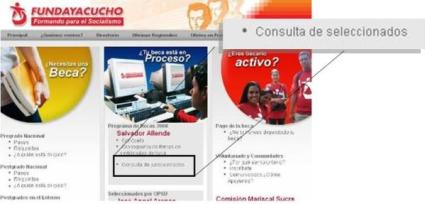 Desde el pasado lunes, ya es visible la lista de más de 90 mil seleccionados que aplicaron en el proceso para las becas Fundayacucho que este año funcionaron bajo el nombre "Salvador Allende", y que tiempo más tarde le agregaron dos puntos seguido de "100 combates por la vida". Se estima que fueron 308 mil personas los que aplicaron para el beneficio económico, que desde mayo hasta junio tuvieron oportunidad de llenar la respectiva planilla de solicitud. Entre el 13 de octubre y la primera semana de noviembre de este año, comenzará la recepción de documentos al igual que los actos de firma de certificados en el que se les otorga oficialmente a los clasificados la asignación mensual que consta de 400 Bolívares fuertes, más el pago de la matrícula, en caso de cursar estudios en institutos privados.