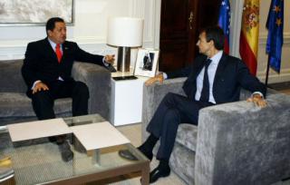 Chávez en conversación con ZapateroDurante la reunión, que duró unos 45 minutos, Zapatero se mostró dispuesto "a prestar su apoyo para el reforzamiento del diálogo bilateral entre Venezuela y la UE". Chávez se entrevistó con Zapatero, poco antes de acudir al Palacio de la Zarzuela, residencia oficial de la Familia Real, para ser recibido por el rey Juan Carlos.