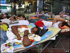 Ahora, equipados con colchonetas y tiendas de campaña, los huelguistaspermanecen a la espera de una respuesta del director ejecutivo de laCIDH en Caracas, Santiago Cantó, quien ya mantuvo conversaciones conrepresentantes estudiantiles.