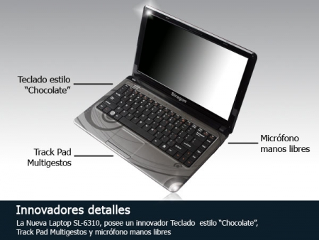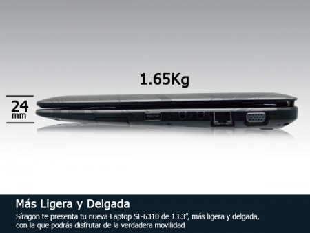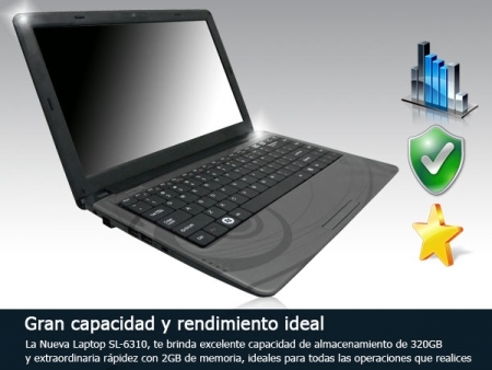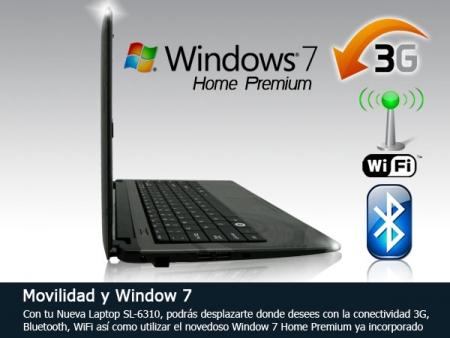 - La SL-6310 soporta conexión a Internet Móvil 3G, además del estándar de conexión inalámbrica Wi-Fi y LAN a través de cable. La antena 3G es integrada, por lo que solo necesita encender el equipo y empezar a disfrutar de la alta velocidad de navegación. Incorpora puerto para señal Bluetooth EDR + 2.1, la tecnología ampliamente difundida para la transferencia de datos vía inalámbrica, desde o hacia la computadora.