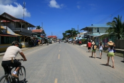 Suman apenas cuatro calles de casas multicolores de maderay la mayoría son cafetines, pensiones y tiendas de abarrotes(comestibles) donde los dueños parecen pasar interminables horastendidos en hamacas.