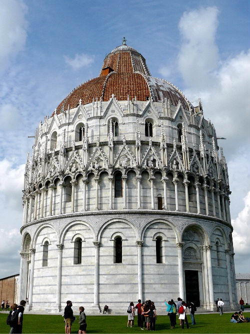 El Baptisterio, que es un lugar dedicado a San Juan Bautista, muy imponente también. De hecho se dice que es mas o menos del mismo tamaño de la torre inclinada.
