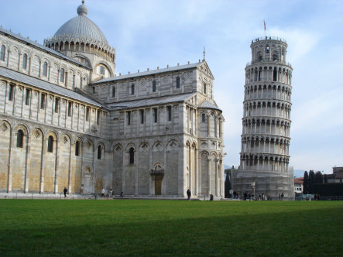 En el vasto césped de la Piazza del Duomo de Pisa se alza un conjunto monumental, célebre en el mundo entero, formado por el Duomo (catedral),el Baptisterio, el Campanile (la famosa “Torre inclinada”) y el Camposanto.