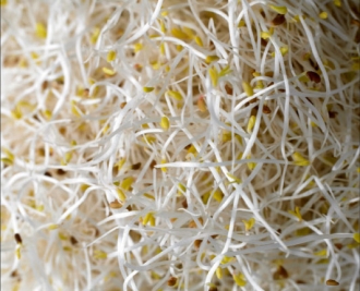 Los brotes de alfalfa, se realizan haciendo germinar estas semillas. Estos brotes poseen increíbles propiedades alimentarias, principalmente por su abundante cantidad de vitaminas, sales minerales y proteínas. Estas últimas superan el 40% del total del peso del brote.
