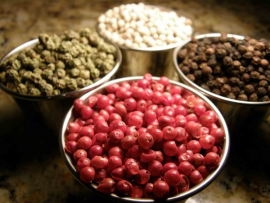 Diferentes variedades de pimienta que se encuentran en el mercado: