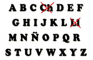 Exclusión de los diágrafos ch y ll del abecedario.