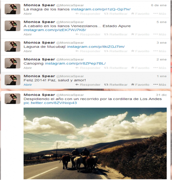 A través de su cuenta en Twitter @MonicaSpear publico algunas imágenes y videos mientras se encontraba de vacaciones.